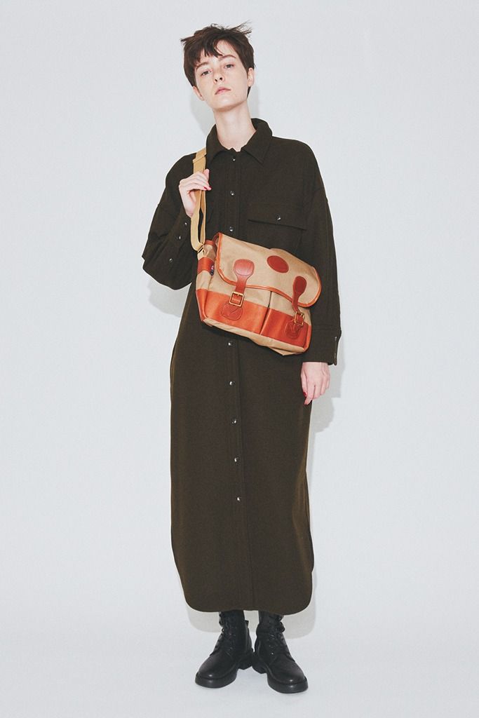 カーキドレス/SACRA(インターリブ) ベージュバッグ/COTSWOLD AQUARIUS(メイデン・カンパニー) 黒ブーツ/TSURU By MARIKO OIKAWA