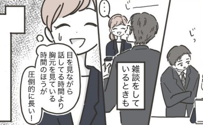 仕事の話をしているときも、雑談をしているときも、目を見ながら話をしている時間より、圧倒的に私の胸元を見て話している時間のほうが長いのです。