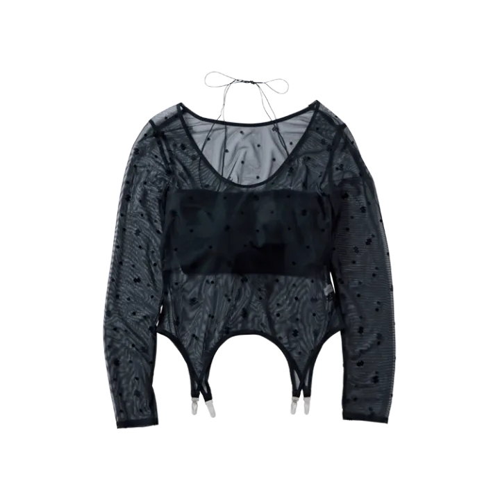 ガーターベルトのデザインでトレンドのグランジロックをひとさじ。シアー生地だから今っぽさが増すよ♡