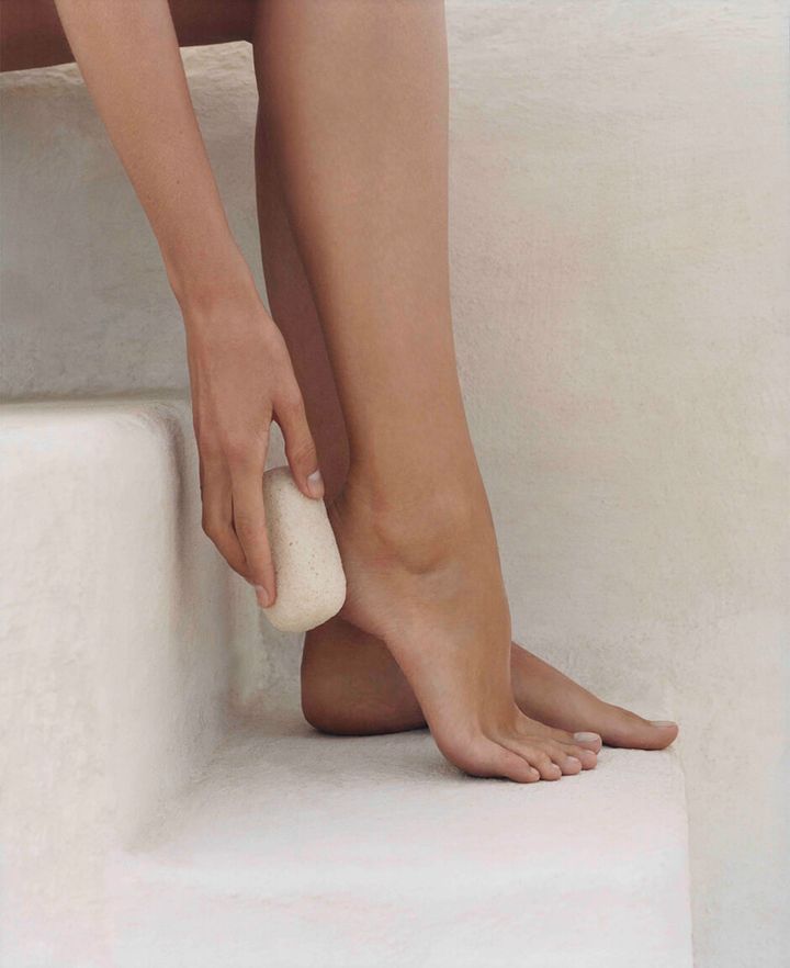 from left - Smoothing Pumice Stone ¥1,595, Nourishing Foot Balm ¥4,070, Relief Lotion Tired Leg & Foot ¥4,070