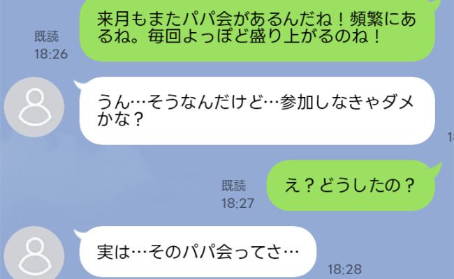 現在小学生の娘が幼稚園のころ、家族ぐるみのお付き合いをしていたお友だちグループがいました。3カ月に1回ほどパパ会も催されていたのですが、ある日、夫が参加を渋る発言をしたのです。気になって理由を尋ねると……!?