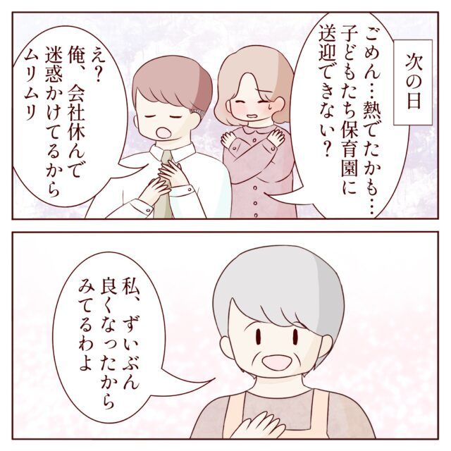 夫と義母を看病した妻が発熱した時、夫は自分優先で出勤。体調が悪いと義母を呼ぶ夫[8-1]|ママ広場マンガ