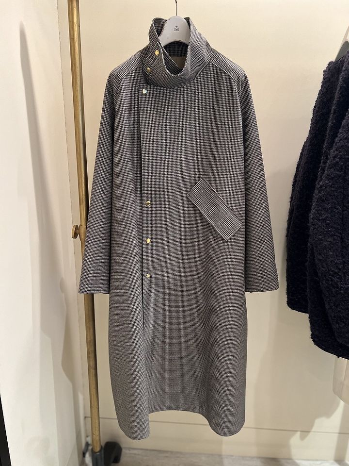 秋になって真っ先に狙うべきは、テンションが上がるコート。ハンサムさが際立つ千鳥格子の”おじ”コートは、大人のオシャレを盛り上げてくれます。ビックカラーのコートとしてももちろん、襟を立ててスタンドカラーにも!さりげなくトレンドが香るアシンメトリーデザインが、きれいめなマニッシュ感をプラスしてくれます。ウール100%なので、レイヤード次第で暖冬も乗り切れそう。