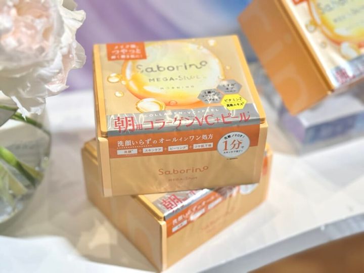 朝用の「サボリーノ メガショット 朝用ツヤピールマスク CC」は、洗顔、スキンケア、ピーリング、下地の機能を備えているのが特徴。スパークルサンシャインの香りで、爽やかな目覚めをサポートしてくれます。