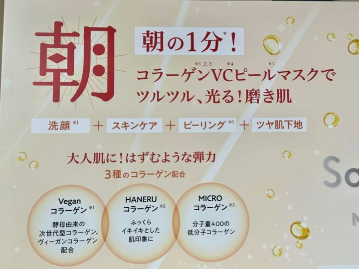 マスクにはビーガン、ハネル、ミクロ、3種類のコラーゲンと、10種のペプチドやビタミンCを配合。不要な古い角質を除去して肌のくすみをケアしながら、ハリやキメを整えはずむような弾力へと導いてくれます。