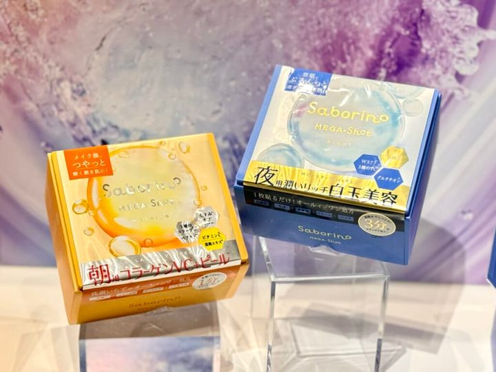 「サボリーノ」新ライン、1ヶ月のオールインワン処方マスク「メガショット」シリーズは、コラーゲンピールや白玉点滴といった美容施術をモチーフにして開発された美容液シート。効果を追い求めながらも、使用時間は朝用1分、夜用3分と時短ケアが叶います。1箱32枚入りの大容量タイプと、7枚入りのお試しタイプが用意されています。