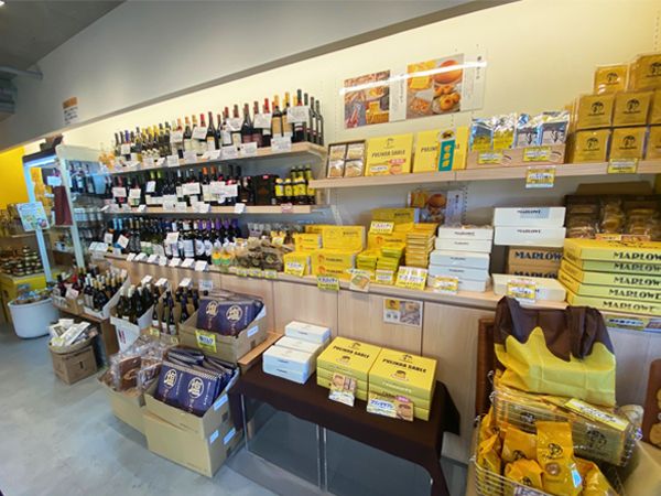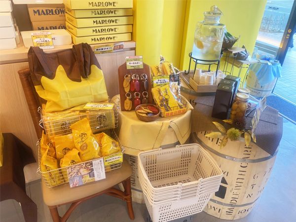 「鎌倉」駅西口から徒歩1分ほど。若宮大路沿い(裏にも入り口あり)にオープンした「マーロウ鎌倉駅前店」。店内は「ビーカー入り手づくりプリン」をはじめ、レストランの味を閉じ込めたレトルトカレーやお菓子、オリジナル雑貨などが並んでいます。