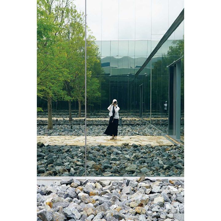 旅の主役は、坂茂が手掛けた下瀬美術館。水盤に浮かぶ展示室は圧巻。鏡の森はどこまでも広がる異空間に迷い込んだよう。