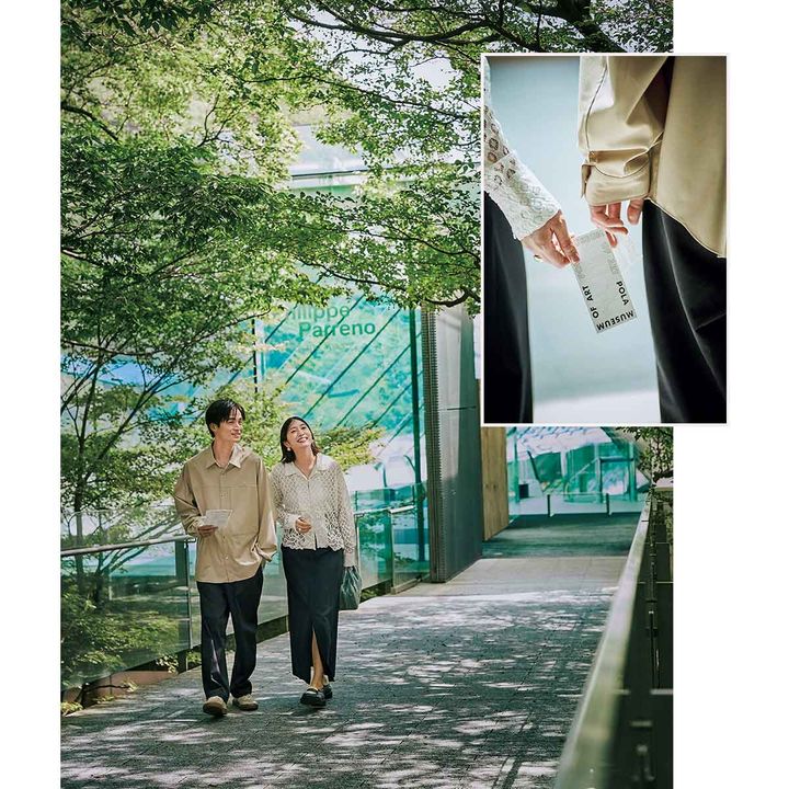 「10年前に兵庫県立美術館で衝撃を受けて以来、夫婦で建築に夢中に。非日常空間に₂人で没入するのが楽しいんです。特に広島は名建築が多いので、建築好きにもおすすめ。空間や家具なども自宅の参考にしています」