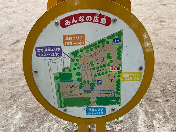 沼の北側には『みんなの広場』がありました。子どもの年齢ごとにエリア分けされた遊具のある公園で、多くのママチャリが停まり、子どもたちが楽しそうに遊んでいました。