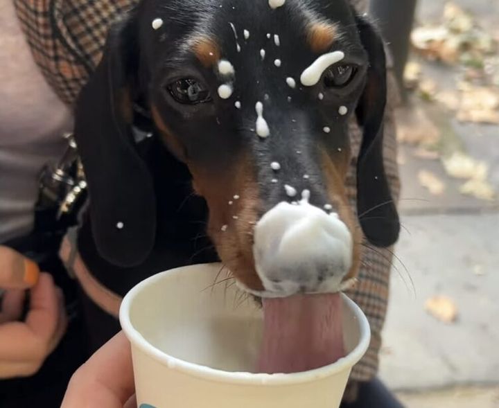 3. 犬さんの顔がクリームまみれに! それでも美味しくて止まらない♪