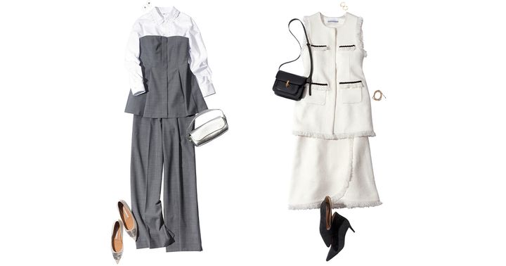 3. 今どき【セットアップ】は“華やか&きちんと”を両得!キレイめコーデ2選