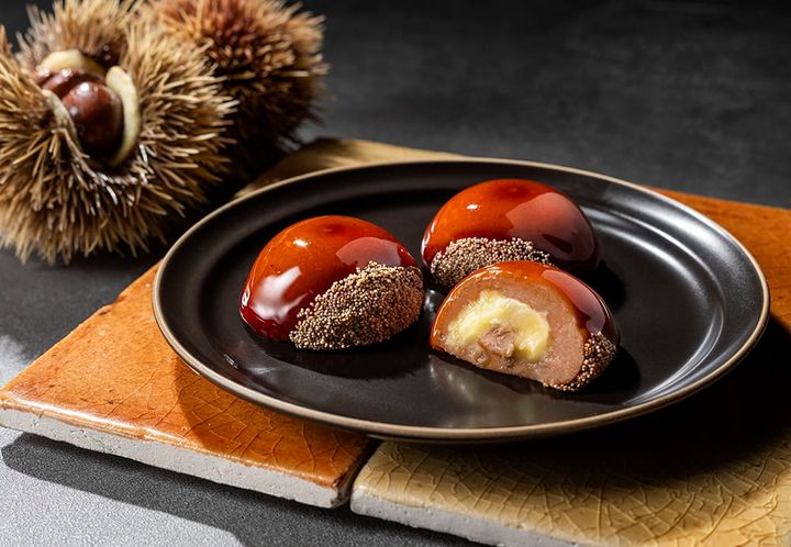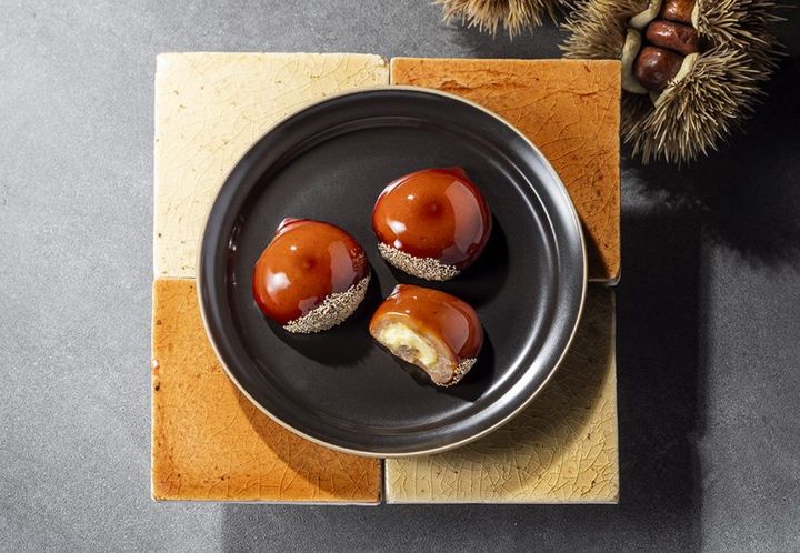 本物の栗みたいな見た目がとってもかわいい、ひと口サイズのフレッシュケーキの「マロンシーズン」。箱には三つのケーキが並んで入っており、開けた瞬間そのかわいさに楽しい気持ちになります。