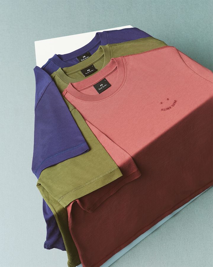 左胸に「PS Paul Smith Happy」ロゴが刺繍された「PS PAUL SMITH」のウェアラインからは、ユニークプリントを落とし込んだトップスが誕生。