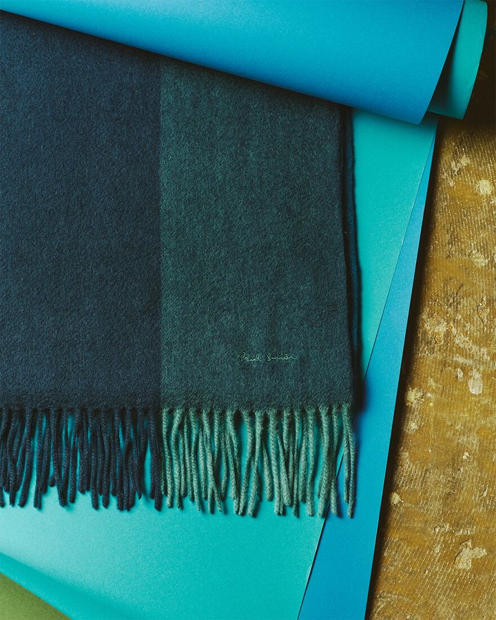 美しい光沢感と上質な素材を誇る定番のストールには、鮮やかなブロックカラーがラインナップ。