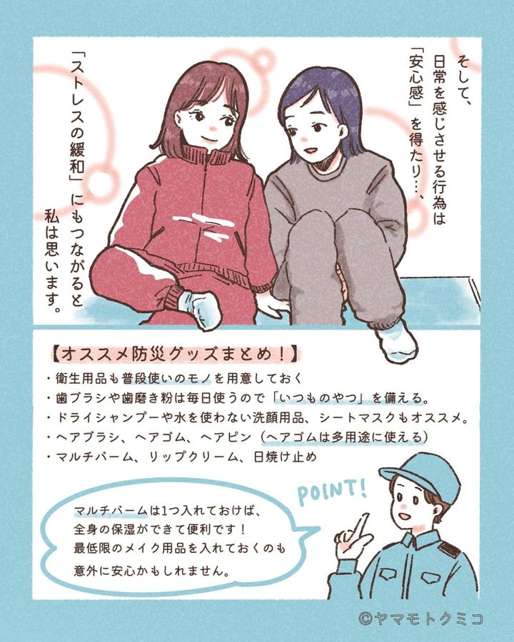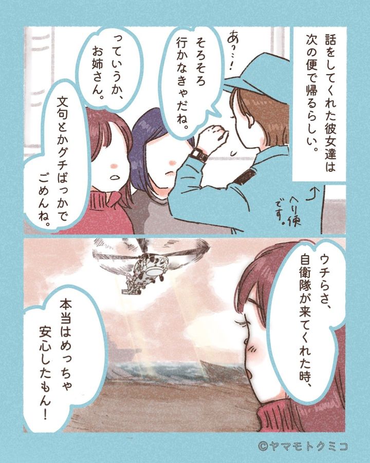元海上自衛隊のイラストレーター・ヤマモトクミコさんが、東日本大震災の支援を通じて学んだことをマンガでお伝えする連載「元自衛隊員が描く“こころの防災”」。