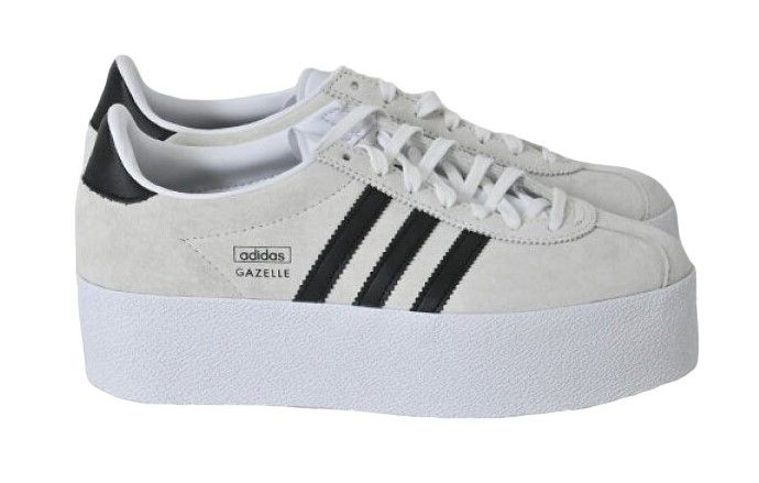 ガゼルアップ/アディダス オリジナルス レザーと合成素材、そして超厚底のプラットフォームミッドソールを組み合わせた、個性的なモデル「ガゼルアップ」。スリーストライプスと同色のヒールタブなどの象徴的なデザイン。