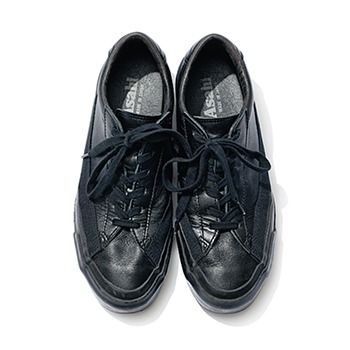 「モノトーンは1足必須。アディダス オリジナルズのサッカーシューズのようなデザインの1足は、黒にも白ボトムにもぴったり似合う。白のラインもアクセントに」(樋口さん)
