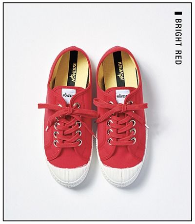赤キャンバススニーカー 11,000円/NOVESTA(ノヴェスタ ジャパン) トラッド感のあるキャンバス地の赤スニーカーが、愛らしいレトロスタイルを構築。
