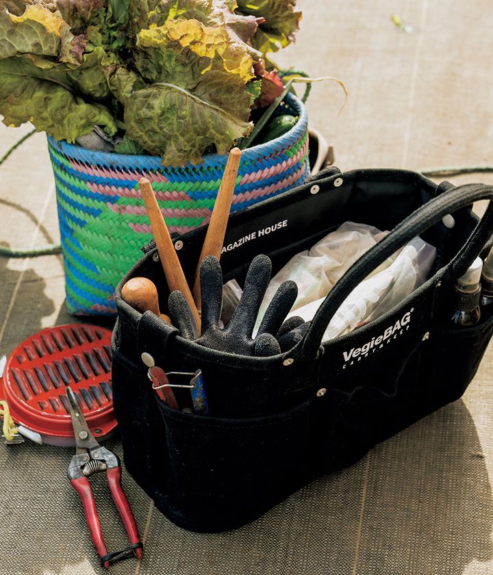 畑仕事の相棒である農作業用の道具や、収穫した野菜を入れるカゴたち。野菜によって刈り取り鋏も異なるので少しずつ種類も増えていきます。