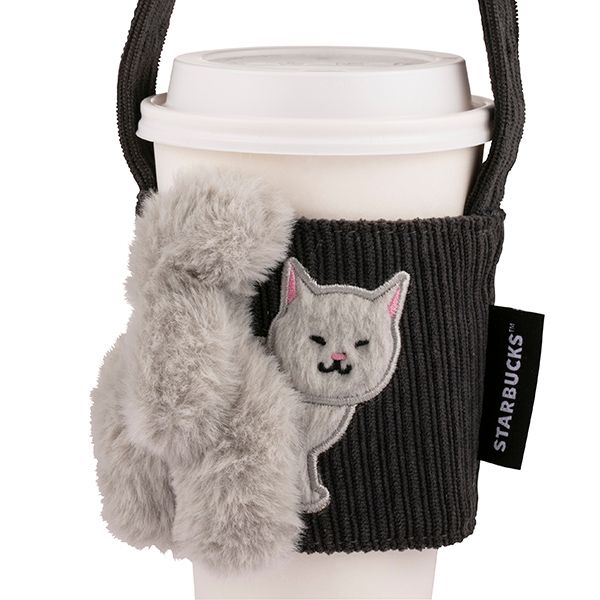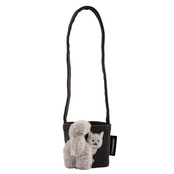 なかでも今期のイチ押しがこちらの「灰貓尾巴便利單杯提袋」。猫がシッポをおっ立ててケツを見せる、肩掛けのカップホルダーであります。Xでも話題になっておりました。ちなみにフィリピンのスタバではピンク猫ホルダーを販売しているようです。やはり日本なら三毛猫版でしょうか。