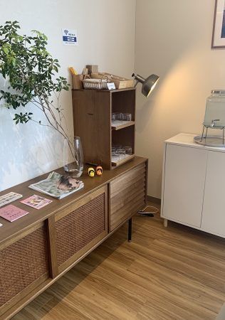 お水もオシャレな棚に置いてあり、可愛い赤べこなども置かれていました。
