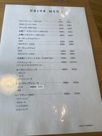 プラス200円でドリップコーヒーのホットとアイスと有機アールグレイティーホットかアイスが選べます。
