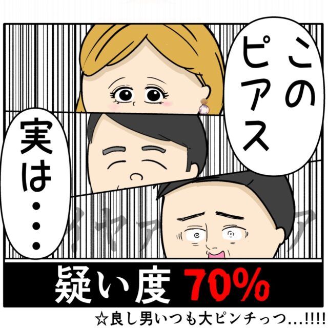 すると、「このピアス、実は・・」とふり子さんが口を開きました。ふり子さんの言葉に震えあがる良し男さん、大ピンチです!!!
