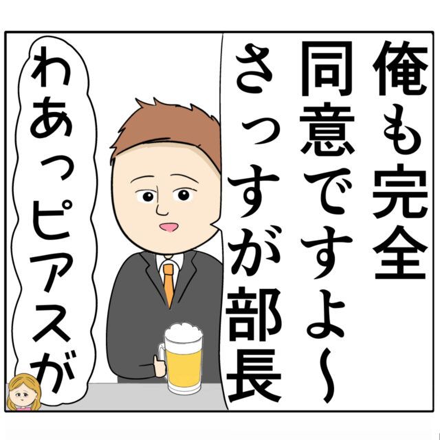 「俺も完全同意ですよ~!さっすが部長」と調子良く背苦腹さんが部長に調子を合わせていると、「わあっ!ピアスが」とふり子さんの声がしました。