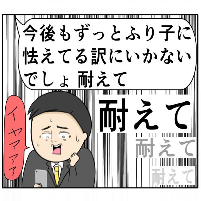 今後もずっと、ふり子に怯えてる訳にいかないでしょ。耐えて」すみれさんからのメッセージを読んだ良し男さんは、「イヤアアア」と思わず叫びました。