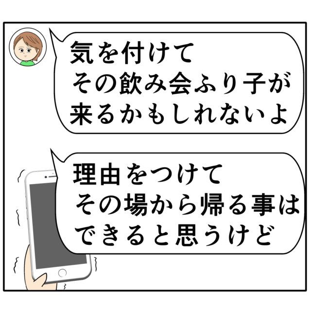 なんとか席を立ちすみれさんのメールをまじまじと確認すると、「気をつけて。その飲み会ふり子が来るかもしれないよ。理由をつけてその場から帰ることはできると思うけど」すみれさんのメールはまだまだ続きます。