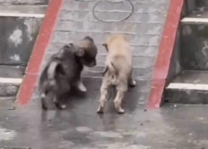 自力で坂を登りたい子犬たち。 手伝いたくなる可愛さ!