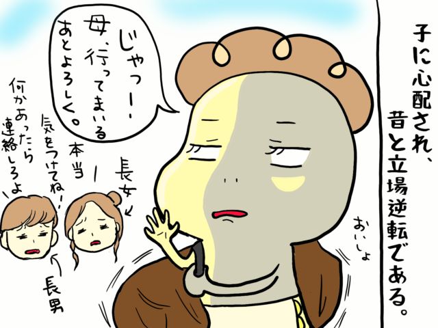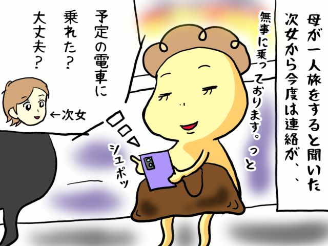 3. 昔と立場が逆転。一人で電車に乗る母を心配する子ども達。|てる子の育児日記