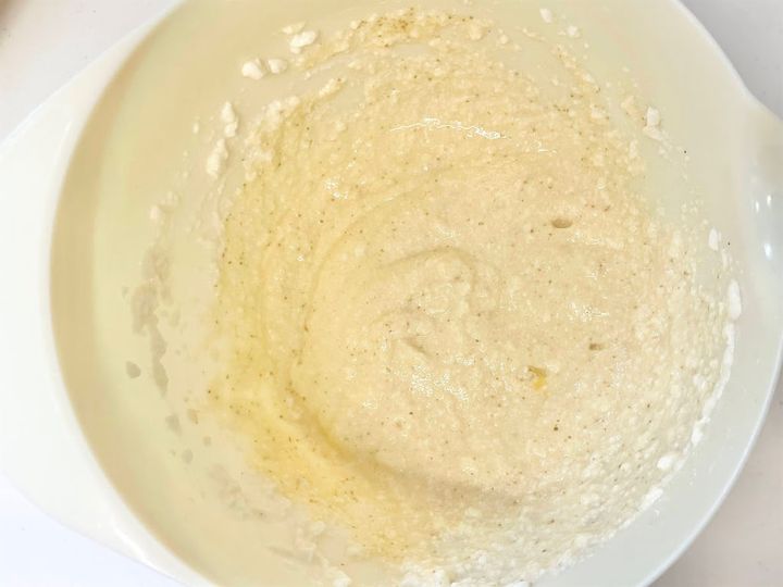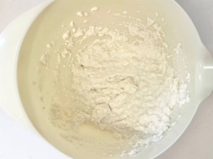 1. 豆腐をなめらかになるまで潰します。