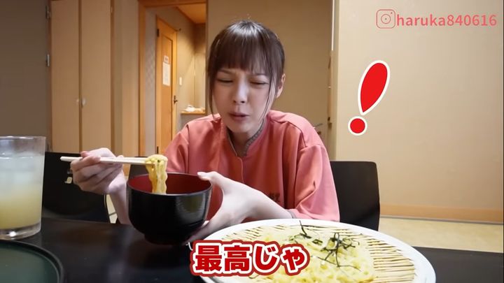 風呂を出ると、食事とお酒にありつくズズさん。つけ麺を食べると、「最高じゃ」とたまらない様子でした!