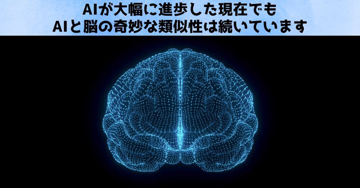 また興味深いことに、AIが進化しても脳機能との類似性は存在し続けている点があげられます。