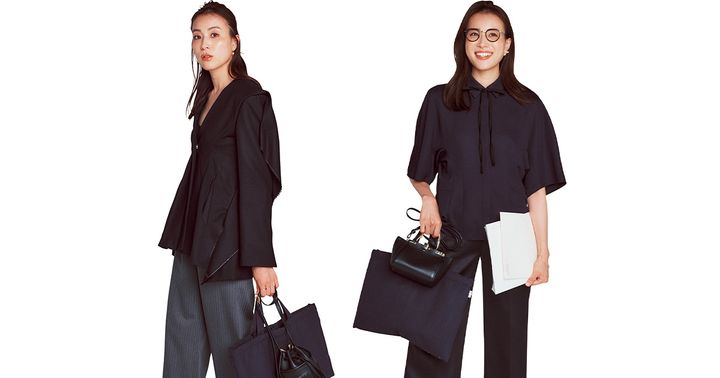 ジャケット¥86,900(ヨウヘイ オオノ)パンツ¥24,200(ランバン オン ブルー/レリアン)ピアス¥145,200リング¥72,600(ともにHirotaka/ヒロタカ 表参道ヒルズ)バッグ¥126,500(J&M デヴィッドソン/J&M デヴィッドソン カスタマーセンター)トートバッグ¥5,500(マールマール)パンプス¥59,400(ネブローニ/フラッパーズ)