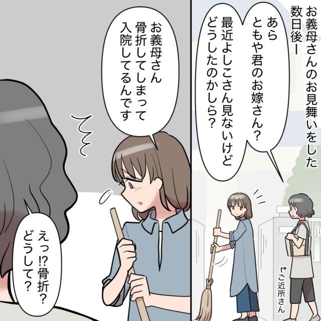義母の入院中、ゆかりさんが家の前の道路を掃いていると、ご近所さんに声をかけられました。