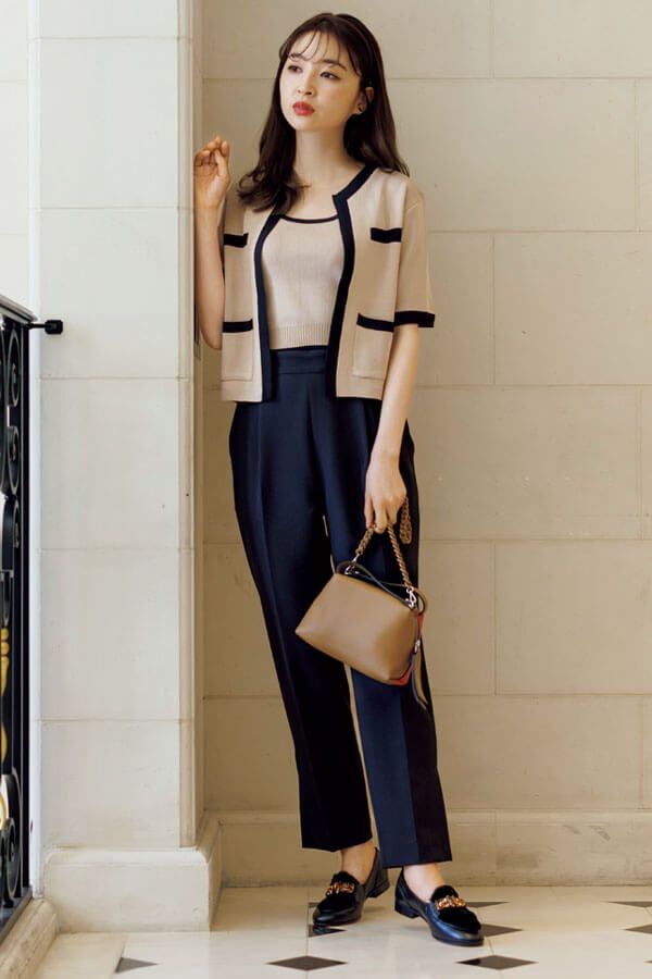 配色アンサンブルでパンツスタイルを上品にクラスアップ
