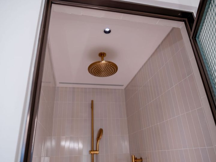 シャワーブースには、オーバーヘッドシャワーも。この部屋にはバスタブはありませんが、アクティブなバケーションならシャワーだけでもいいと思います。