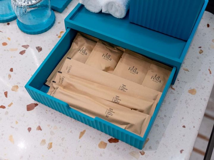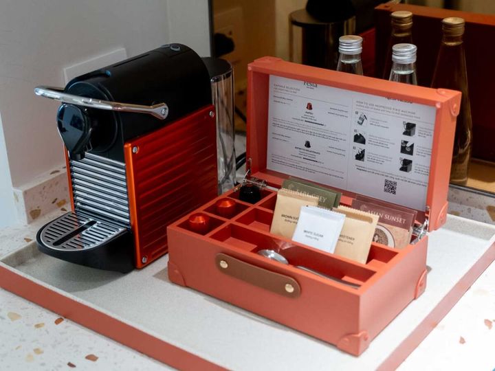 イタリアのコーヒーと言えばエスプレッソ。部屋でもネスプレッソのマシーンで淹れることができます。紅茶とフレーバーティーも完備。