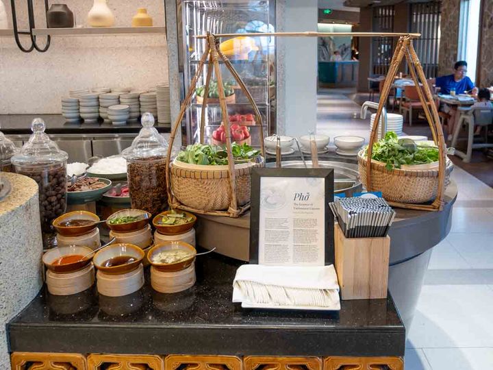 さてLa Festaに一泊して翌日、朝食はレストランでブッフェです。洋食の料理も並んでいますが、ベトナムに来たのならやっぱりベトナム料理が食べたい!ということで、上の写真はフォーを作ってくれるコーナーです。