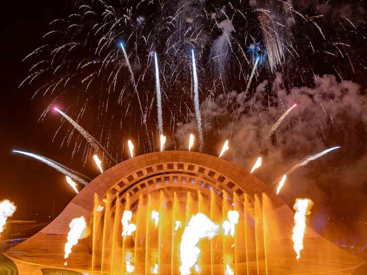 30分ほどのショーの終わりには花火が打ちあがります。この屋外シアターのキャパシティは5000人。この日も大勢の観客で盛り上がりました。