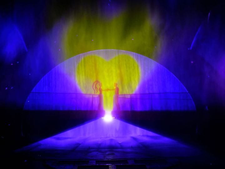 毎日夜になると、やはりサンセットタウン内にある屋外シアターでは「Kiss of the Sea」というタイトルのショーを見ることができます。宇宙と地球をテーマにした壮大なストーリーが、巨大な水のスクリーンに投影された音と光の洪水! 上はそのクライマックスの映像です。写真ではわかりにくいのですがこの水のスクリーンは1000平方メートルあるので、フットサルコートよりちょっと広いという大きさ! 迫力があります。