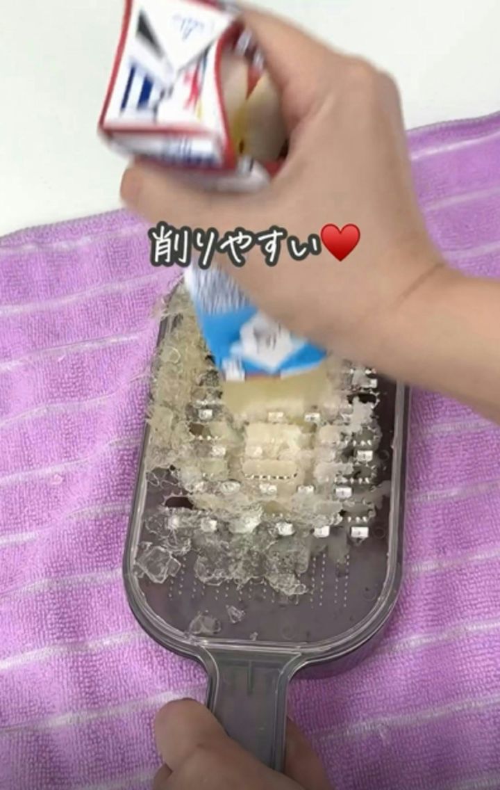 3. パックジュースで!子どもが喜ぶかき氷【ライフハック】おろし金を使う神テクを紹介