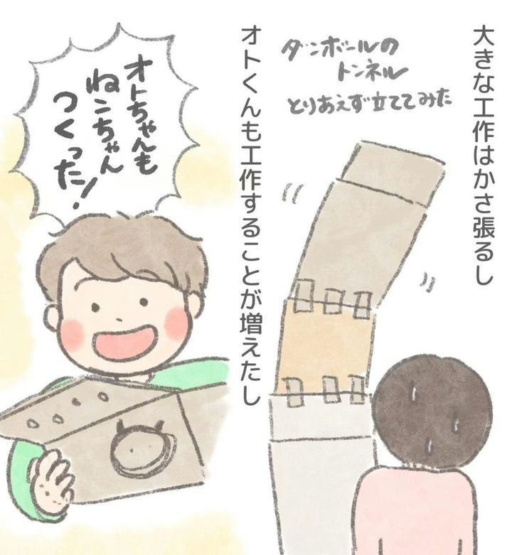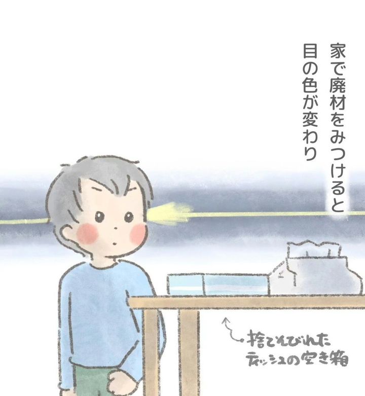 わが子の好きな遊びは何ですか?好きなこと、興味のあることはどんどんやらせてあげたいと思うものが親心でしょう。しかし、やらせてあげたいけど…と悩むこともたくさんあるはずです。さくらいえま(@sakuraiemma_manga)さんは双子のママ。今回は双子のアニくんのお話です。アニくんが好きなことは工作で、ひらめきを形にすることが好きな様子。「どんどんやってほしい」と思う一方、さくらいえまさんにはある悩みが…。どうぞご覧ください。