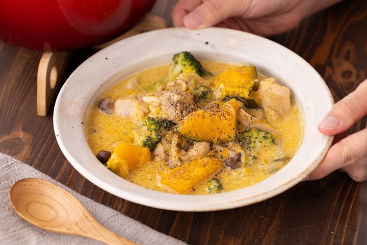 今回は秋の食材「かぼちゃ」を使い、これから気温が下がっていくにつれて食べたくなる、とろっとろで濃厚な野菜たっぷりのシチューをご紹介します。