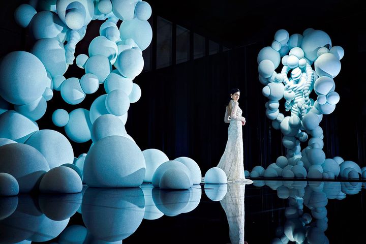 “スマート・ラグジュアリーホテル”を提案する「コンラッド大阪」。スタイリッシュならせん階段や現代アートの前での撮影が花嫁に人気です。40階のロビーにある風神雷神をモチーフにした名和晃平氏のアート前で、ここでしか撮れない迫力ある一枚を。