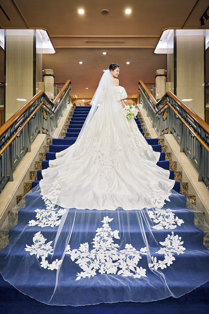 「帝国ホテル 東京」といえば、重厚で格調高い空間と上質なおもてなしで、日本のホテル・ウエディングをけん引し続ける存在。ドレスのバックスタイルが美しく映える大階段は、花嫁憧れのスポット。エレガンスに満ちた写真を約束します。
