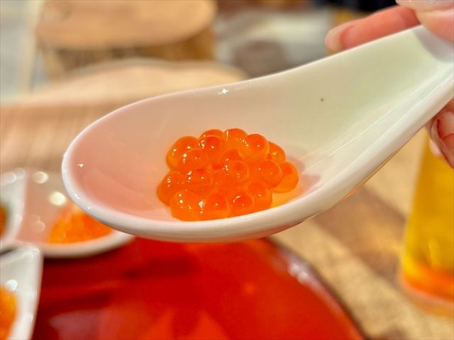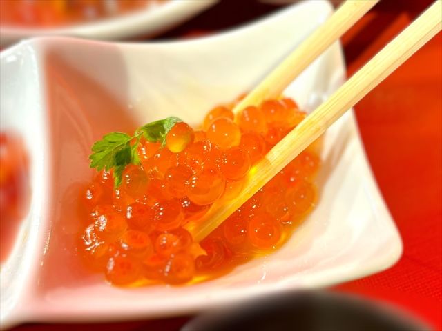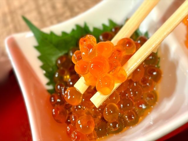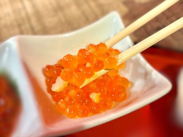 今まで醤油漬けのいくらしか食べたことがなかった筆者。醤油の味がしないいくらってどのようなものか? と少しばかり疑心暗鬼になっていましたが、そんな疑いを吹き飛ばすおいしさでした!